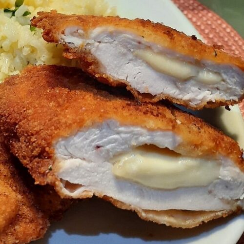 Valdor gyorsfagyasztott, készre sütött, panírozott, cheddar sajttal töltött csirkemell. Csirkemellhús 40%