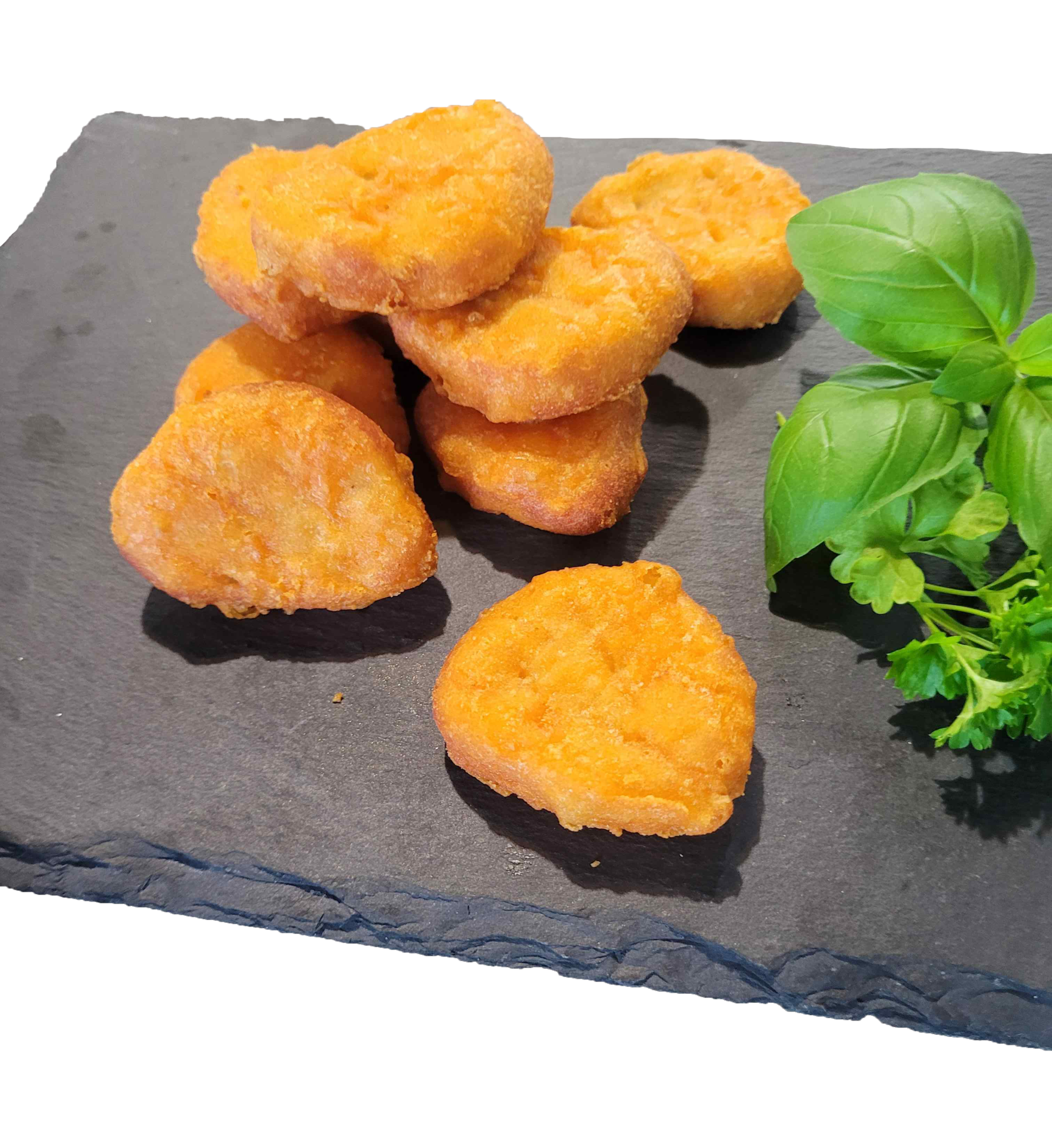 Készre sütött, gyorsfagyasztott, csirkemelldarabokból formázott, tempurával bevont, csípős csirke nuggets